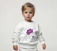 Le nostre felpe per neonati sono realizzate all'85% in cotone biologico ed etico e al 15% in poliestere riciclato.