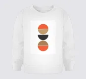 Due serie di semicerchi sono impilati verticalmente, ciascuno con colori contrastanti come l'arancione, il beige e il nero, creando motivi geometrici. La simmetria e il contrasto cromatico evocano un senso di equilibrio e di design moderno.