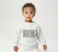 Le nostre felpe per neonati sono realizzate all'85% in cotone biologico ed etico e al 15% in poliestere riciclato.