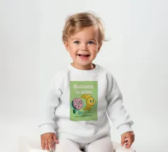 Le nostre felpe per neonati sono realizzate all'85% in cotone biologico ed etico e al 15% in poliestere riciclato.