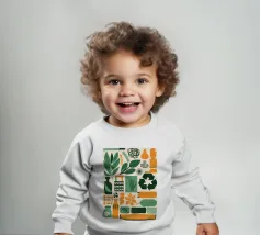 Le nostre felpe per neonati sono realizzate all'85% in cotone biologico ed etico e al 15% in poliestere riciclato.
