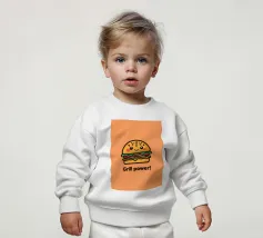 Le nostre felpe per neonati sono realizzate all'85% in cotone biologico ed etico e al 15% in poliestere riciclato.