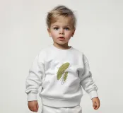 Le nostre felpe per neonati sono realizzate all'85% in cotone biologico ed etico e al 15% in poliestere riciclato.
