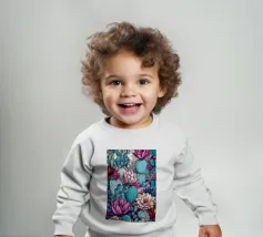 Le nostre felpe per neonati sono realizzate all'85% in cotone biologico ed etico e al 15% in poliestere riciclato.