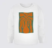 Un vaso stilizzato dalle forme astratte e fluide si estende verso l'esterno, ricordando forme vegetali. Il colore arancione vibrante contrasta con lo sfondo verde tenue, creando un effetto visivo dinamico.