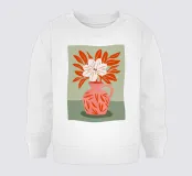 Un'illustrazione elegante e minimalista di un semplice vaso che contiene un bouquet di papaveri rossi e arancioni, che mette in risalto la semplice bellezza dei fiori.