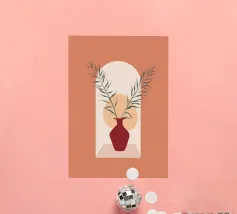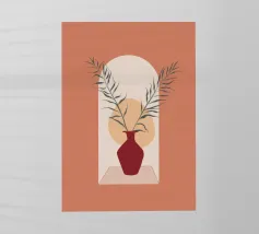 Un vaso minimalista con rami, posizionato su uno sfondo ad arco, che mette in mostra un arredamento semplice ma elegante.