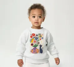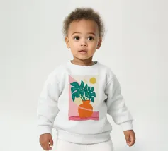 Le nostre felpe per neonati sono realizzate all'85% in cotone biologico ed etico e al 15% in poliestere riciclato.