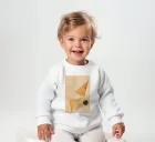 Le nostre felpe per neonati sono realizzate all'85% in cotone biologico ed etico e al 15% in poliestere riciclato.