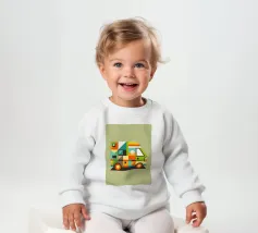 Le nostre felpe per neonati sono realizzate all'85% in cotone biologico ed etico e al 15% in poliestere riciclato.