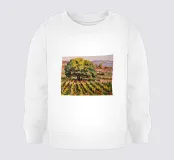 Rigogliosi e verdi filari di vite si estendono su un paesaggio inondato di sole nella classica tradizione dei vigneti europei, trasmettendo un senso di abbondanza e il ritmo pacifico della vita di campagna.