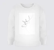 Illustrazione minimalista di un cervo, catturato in una forma fluida e astratta. Questa graziosa composizione evoca forza e serenità e si adatta perfettamente a interni tranquilli e contemporanei. Un tranquillo omaggio alla natura e all'eleganza.