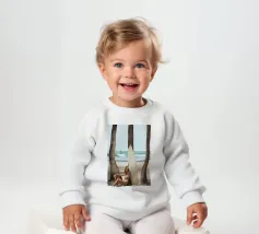 Le nostre felpe per neonati sono realizzate all'85% in cotone biologico ed etico e al 15% in poliestere riciclato.