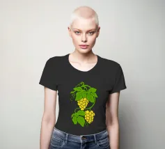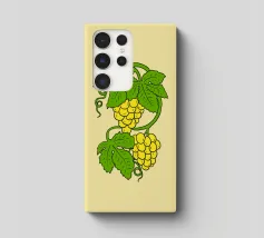 Uva bianca (giallo-verde) con foglie verdi, illustrazione vivace per gli amanti del vino e della frutta.