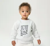 Le nostre felpe per neonati sono realizzate all'85% in cotone biologico ed etico e al 15% in poliestere riciclato.