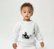 Le nostre felpe per neonati sono realizzate all'85% in cotone biologico ed etico e al 15% in poliestere riciclato.