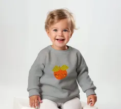 Le nostre felpe per neonati sono realizzate all'85% in cotone biologico ed etico e al 15% in poliestere riciclato.
