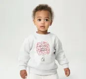 Le nostre felpe per neonati sono realizzate all'85% in cotone biologico ed etico e al 15% in poliestere riciclato.
