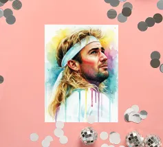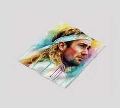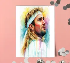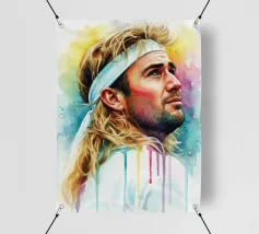 Andre Agassi, leggendario tennista, in un dipinto d'arte ad acquerello