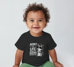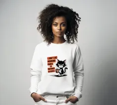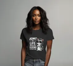 Un gatto cool che indossa occhiali da sole si erge sicuro di sé a braccia incrociate, circondato da un effetto scintillante. Accompagnato dal testo umoristico "Ammettilo, la vita sarebbe noiosa senza di me", il disegno emana fascino e attitudine.