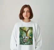 Una deliziosa scena di madre koala che coccola il suo piccolo in una vivace giungla tropicale. Questo dolce disegno di animali selvatici aggiunge calore e un delicato tocco di natura a qualsiasi spazio.
