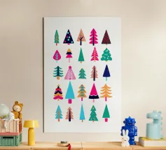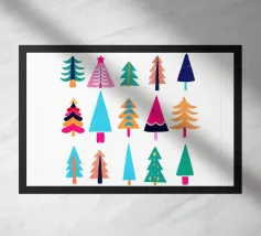 Un design natalizio allegro e colorato con venti alberi di Natale dal design diverso, ognuno unico, giocoso e pieno di energia. I colori vivaci e le forme moderne creano un'atmosfera festosa con un tocco di pop-art. Ideale per soggiorni, camere dei bambini o uffici creativi. Questo poster porta il buon umore, lo stile e l'allegria natalizia su qualsiasi parete.