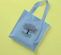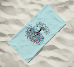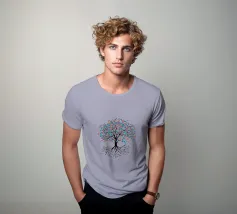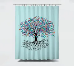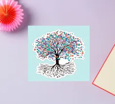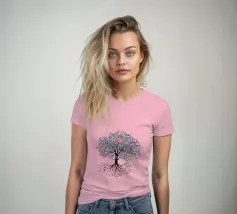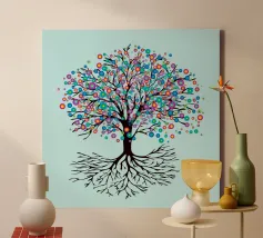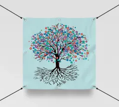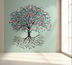 Illustrazione vettoriale di un albero della vita o yggdrasil con fiori tondi astratti dell'arcobaleno.