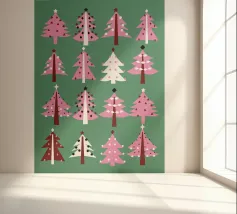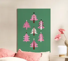 "Oh, albero di Natale, oh, albero di Natale! Come sono belli i tuoi rami". Illustrazioni di pini festosi per le festività natalizie.