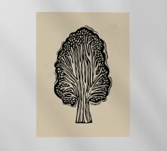 Design con sagoma di albero in stile linoleografico