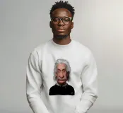 Illustrazione caricaturale umoristica del noto matematico e geniale scienziato austriaco Albert Einstein. Una delle caricature realizzate per la serie Celebrity Sunday, in cui un personaggio famoso viene ritratto in un giorno. L'idea è di mostrarli come in una fototessera per avere coerenza.