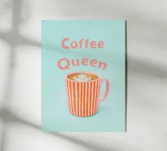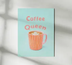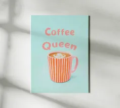 La tazza "Coffee Queen", con il suo design retrò a strisce arancioni e la tipografia minimalista, è l'accessorio di design perfetto per ogni amante del caffè che desidera gustare espresso e cappuccino con stile.