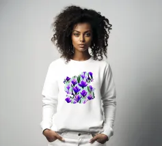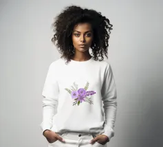 Abbracciate la bellezza dell'amore con questo wall art caratterizzato da uno splendido fiore viola e dalla scritta in grassetto 'Love'. Perfetto per aggiungere un tocco di romanticismo a poster, abbigliamento, adesivi, quaderni, tazze e asciugamani.
