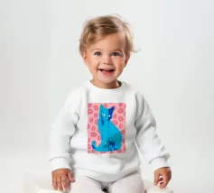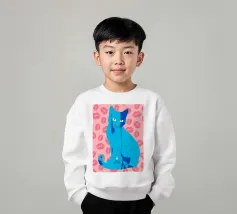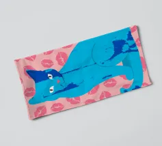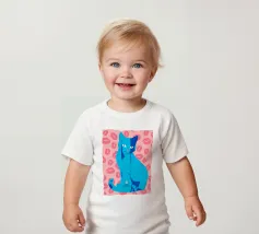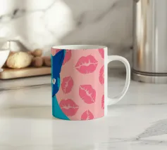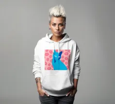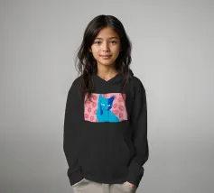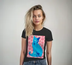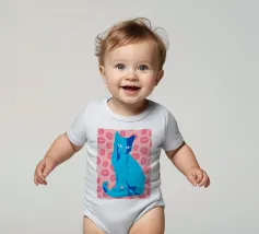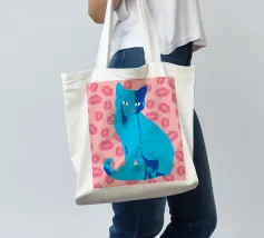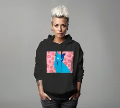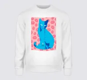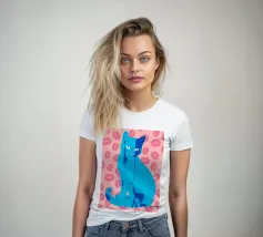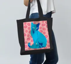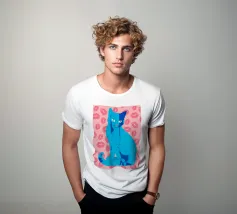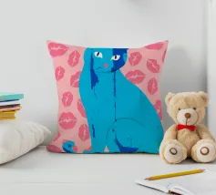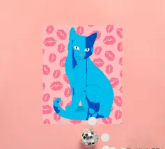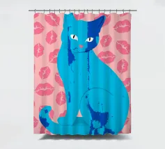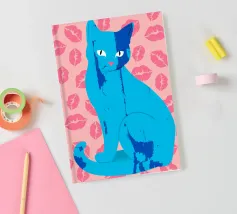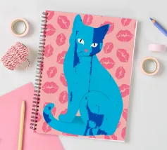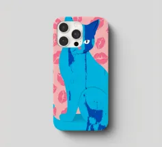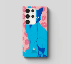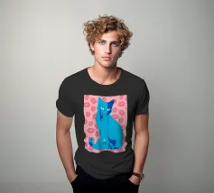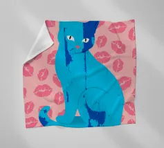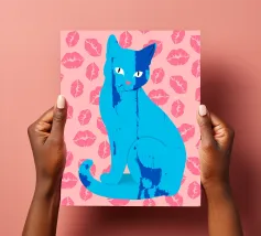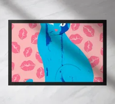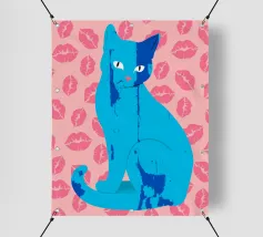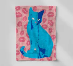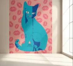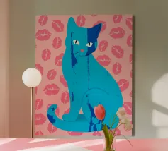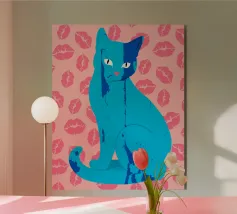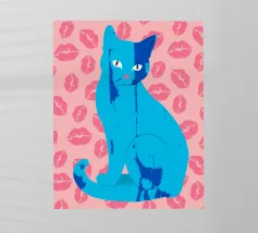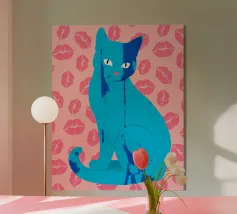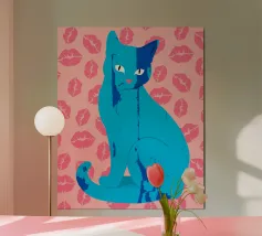 Una vivace illustrazione di gatti ispirata alla pop-art, con un sorprendente felino blu dalla finitura astratta e strutturata. Su uno sfondo rosa, con una vivace stampa di labbra, questo disegno emana fascino e un'estetica moderna. Perfetto per gli amanti dei gatti e per chi apprezza l'arte colorata e accattivante!