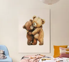 Due orsetti che si abbracciano: questo poster è puro calore e sicurezza. L'incantevole aspetto acquerellato dona emozione e armonia alla cameretta o a qualsiasi stanza che abbia bisogno di irradiare amore. Ideale come regalo per una nascita, un battesimo o semplicemente come segno di amicizia.