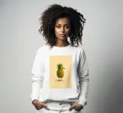 Portate una ventata di fascino tropicale nel vostro spazio con questa stravagante opera d'arte con uccello ananas. Con un uccello giallo brillante che emerge da un corpo di ananas realistico, completo di corona di foglie ed espressione giocosa, questo disegno unisce creatività e umorismo in uno stile pulito e moderno. Il morbido sfondo beige ne esalta l'estetica calda ed estiva. Perfetto per cucine, camere dei bambini, studi o collezionisti di arte stravagante e fantasiosa, aggiunge un tocco divertente ed edificante a qualsiasi interno.