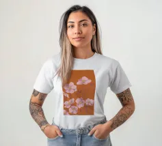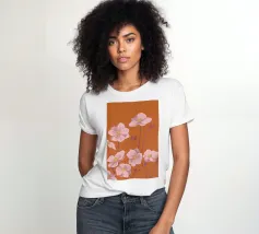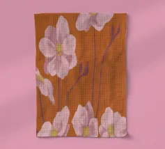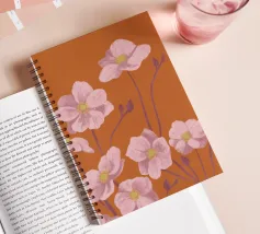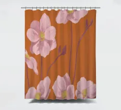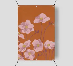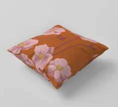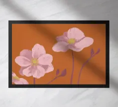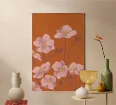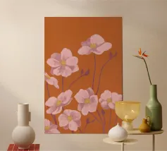 Illustrazione di anemoni, deliziosi fiori rosa su uno sfondo rosso pietra.