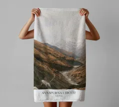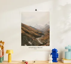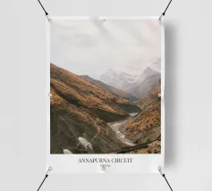 Un sereno sentiero di montagna si snoda attraverso le vaste valli del Circuito dell'Annapurna, circondato da imponenti giganti himalayani e dalla frizzante aria alpina. Questa immagine cattura la cruda bellezza e la quiete spirituale di uno dei percorsi di trekking più iconici del mondo. Un'aggiunta perfetta per gli avventurieri e i sognatori della montagna.