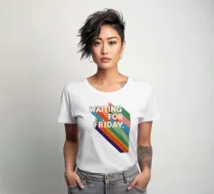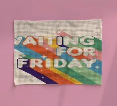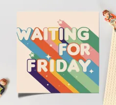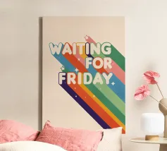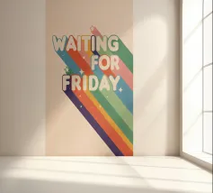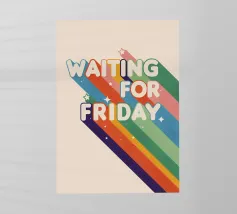 Preparatevi al weekend con questa stampa d'arte "Waiting For Friday"! Caratterizzato da una tipografia di ispirazione rétro con strisce colorate e accenti scintillanti, questo disegno cattura la divertente attesa del venerdì. Perfetto per aggiungere un tocco di stile vintage e di allegria alla vostra casa o al vostro ufficio. Un'opera ideale per tutti coloro che fanno il conto alla rovescia per il giorno più bello della settimana! Creato da showmemars