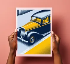 Nostalgia ed eleganza in ogni dettaglio! Questo design è caratterizzato da iconiche auto d'epoca con dettagli nitidi ed eleganti.