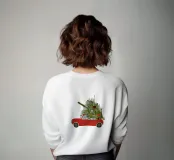 L'auto di Natale rossa con l'albero di Natale sul tetto su sfondo beige è una grande decorazione natalizia che irradia calore, accoglienza e allegria. Perfetta per chi vuole rallegrare la propria casa o è alla ricerca di una dolce immagine da regalare. Adatto anche come accogliente maglione per Natale e come maglione di gruppo per fantastiche foto natalizie. Personalizzatelo con il vostro nome o con una bella frase natalizia!