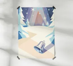 Illustrazione di un'auto che guida nella neve con uno stile geometrico moderno.