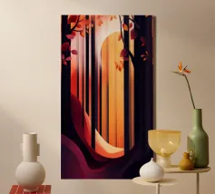 La bellezza e il colore della foresta in autunno, con gli ori e i rossi che cadono sui letti di rame. Questo paesaggio lineare mostra la bellezza intelligente dell'autunno.