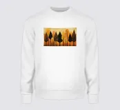 Un'accattivante illustrazione astratta di una foresta con alberi stilizzati dalle ricche tonalità autunnali di arancio, giallo e marrone. Lo sfondo strutturato esalta l'estetica calda e stagionale.