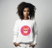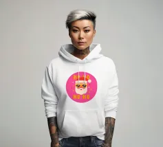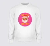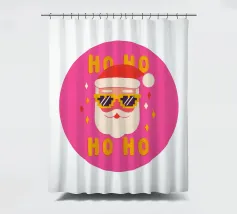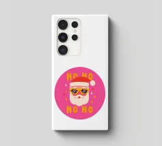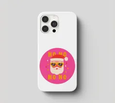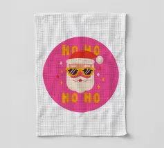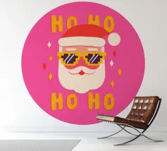 Questa allegra illustrazione natalizia mostra un simpatico Babbo Natale con occhiali in stile pixel art con un colorato messaggio "Ho Ho Ho". Lo sfondo rosa e i dettagli di ispirazione retrò conferiscono all'immagine un fascino moderno e spiritoso, perfetto per decorazioni natalizie festose e divertenti.