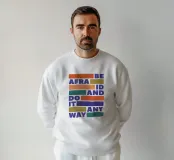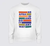 Un design tipografico audace e stimolante con la frase motivazionale "Be Afraid and Do It Anyway". Questo testo moderno, in stile blocco, è abbinato a colori di ispirazione retrò, creando un pezzo di grande impatto e ispirazione. Perfetto per aggiungere un tocco di fiducia a decorazioni per la casa, abbigliamento e accessori. Ideale per chi ama i messaggi forti e il design audace. Creato da showmemars