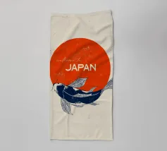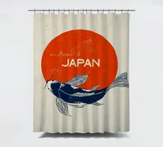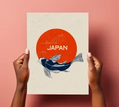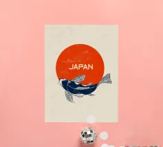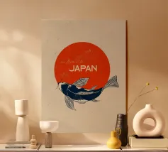 Questa opera d'arte raffigura un elegante pesce koi che nuota con grazia su un audace cerchio rosso, simbolo della bandiera giapponese. Il movimento fluido della koi rappresenta forza, perseveranza e fortuna, profondamente radicate nella cultura giapponese. In alto, la frase "Welcome to Japan" aggiunge un tocco caldo e invitante, rendendo questo pezzo un perfetto connubio tra tradizione e arte.