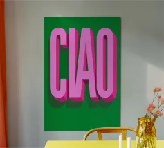 Questo potente poster tipografico porta alla parete il fascino italiano e il design moderno. L'enorme "CIAO" rosa su uno sfondo verde appare forte, chiaro ed elegante. Perfetto per attirare l'attenzione in corridoio, in ufficio o in salotto, per tutti coloro che desiderano celebrare gli addii e i saluti con un certo piglio. Retrò, di tendenza e pieno di gioia di vivere!