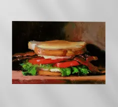 Noah Verrier, uno dei 40 migliori pittori americani di New American Paintings, propone deliziose nature morte di classici comfort e fast food americani. Panini al formaggio grigliato, PB&J o Big Mac prendono vita e fanno venire l'acquolina in bocca. La tecnica magistrale dell'artista di creare contrasti, catturare la luce o far brillare la superficie di una goccia di formaggio è a dir poco magistrale. Noah è un ex professore d'arte e vive con la sua famiglia a Tallahassee. Le sue opere sono state esposte in tutto il mondo, tra cui Giappone, Australia, Germania, India, Canada, Inghilterra e Francia.