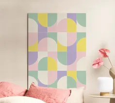 Motivo geometrico in grassetto ispirato alle piastrelle da parete. Forme geometriche semplici in una tavolozza di colori pastello.