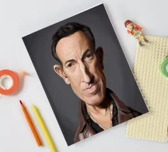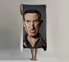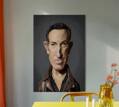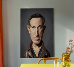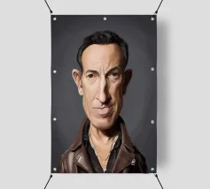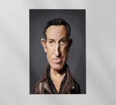 Illustrazione caricaturale umoristica del noto cantautore e rockstar americano conosciuto come il Boss, Bruce Springsteen. Una delle caricature realizzate per la serie Celebrity Sunday, in cui un personaggio famoso viene ritratto in un giorno. L'idea è di mostrarli come in una fototessera per avere coerenza.